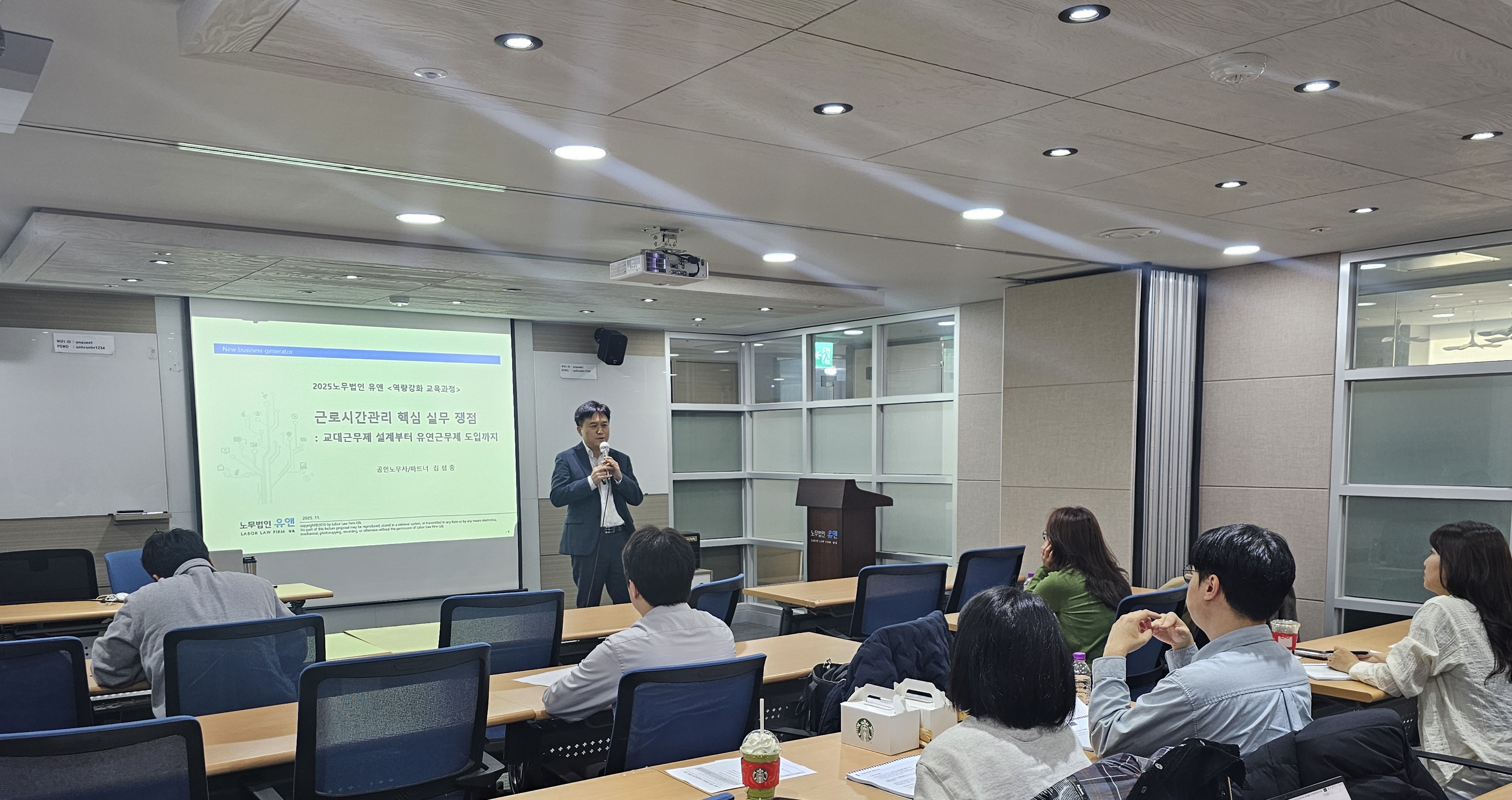 노무법인 유앤은 2025.10.30.(목) 「교대제 등 근무형태에 따른 근로시간 관리 노하우」 (강사, 김성중 노무사)을 주제로 인사노무 담당자 역량향상 교육을 실시하였습니다.
