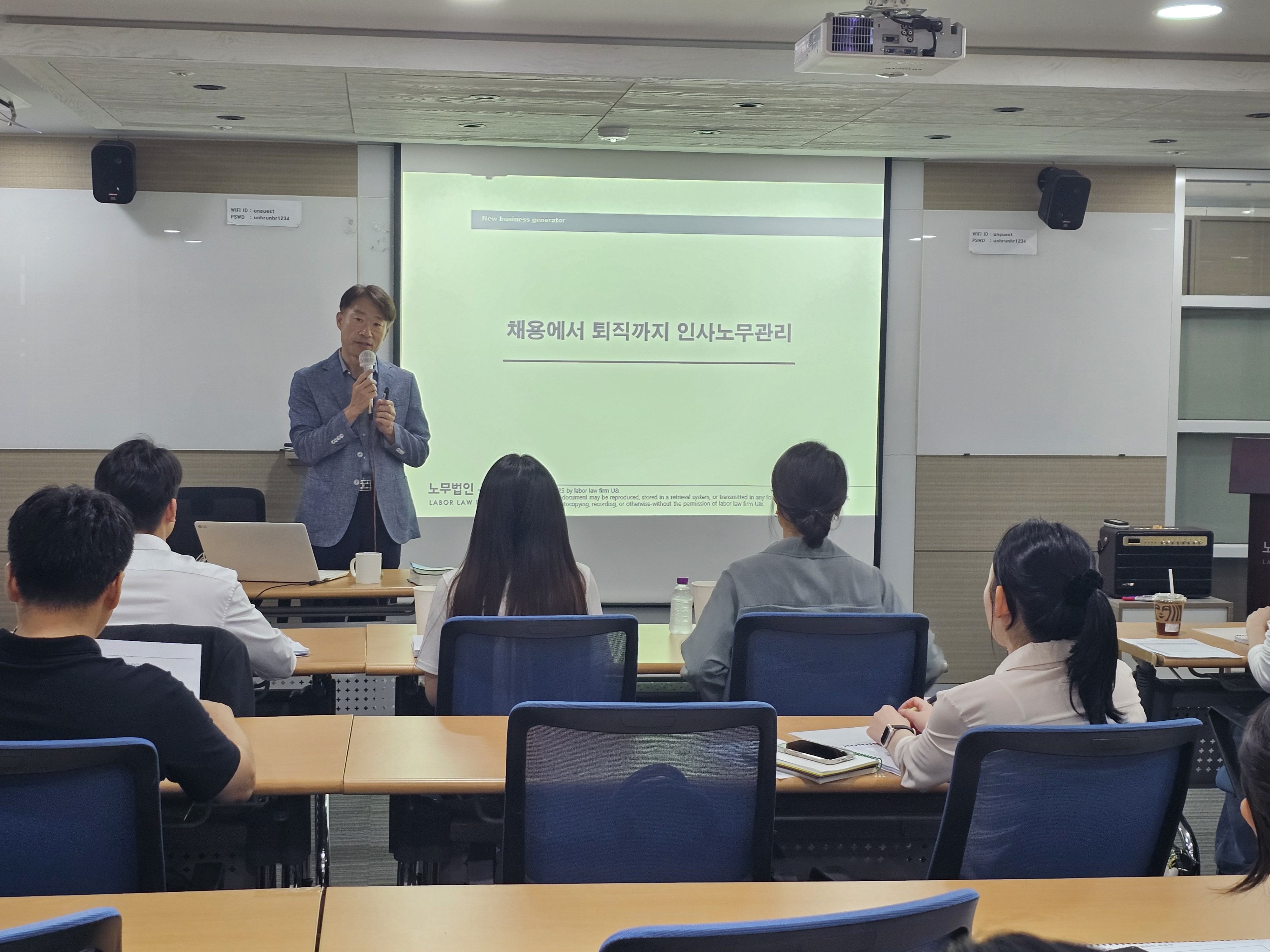 노무법인 유앤은 2025.09.25.(목) 「인사노무 담당자를 위한 채용에서 퇴직까지 핵심노무관리」 (강사, 오영배 노무사)을 주제로 인사노무 담당자 역량향상 교육을 실시하였습니다.