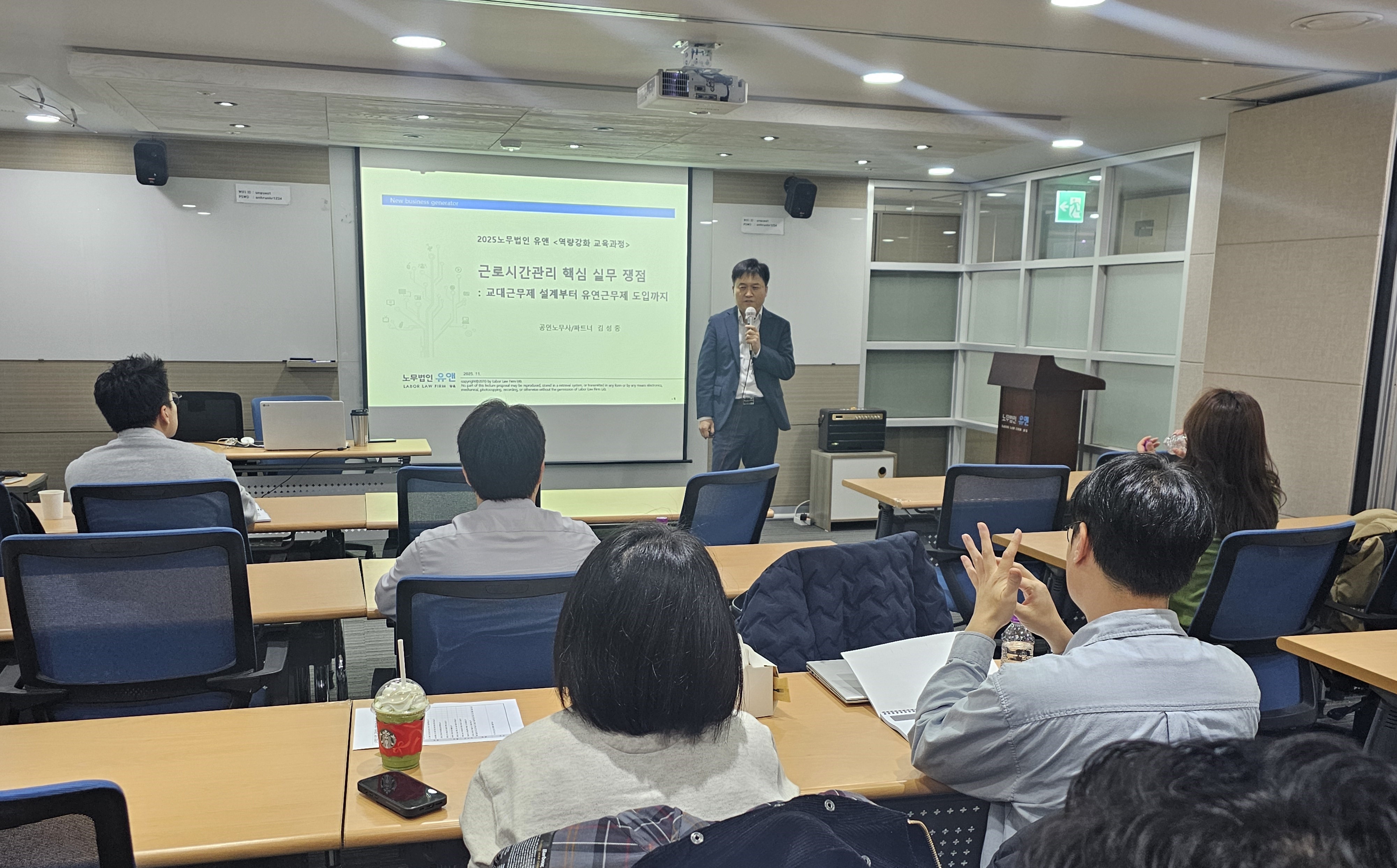 노무법인 유앤은 2025.10.30.(목) 「교대제 등 근무형태에 따른 근로시간 관리 노하우」 (강사, 김성중 노무사)을 주제로 인사노무 담당자 역량향상 교육을 실시하였습니다.