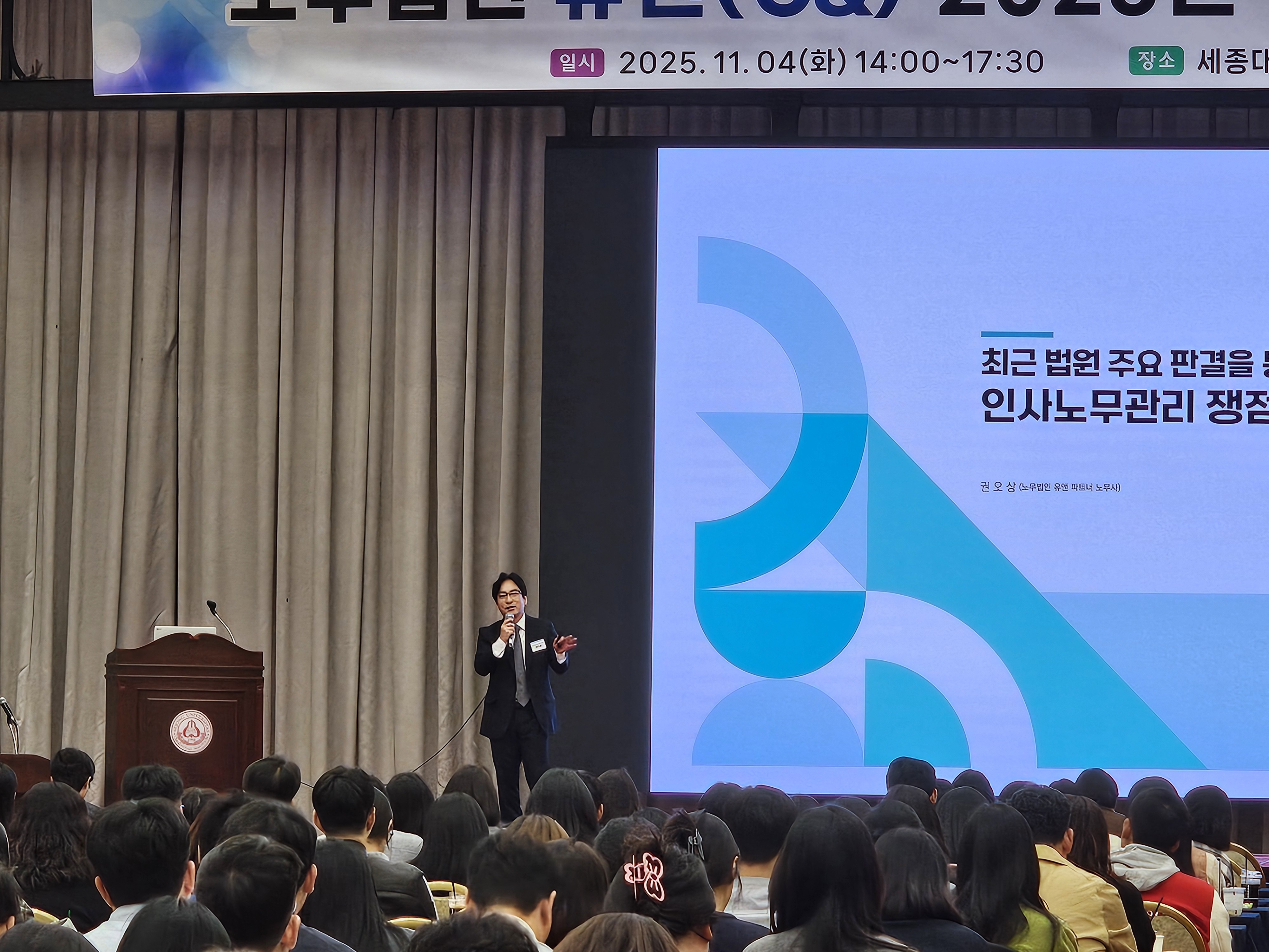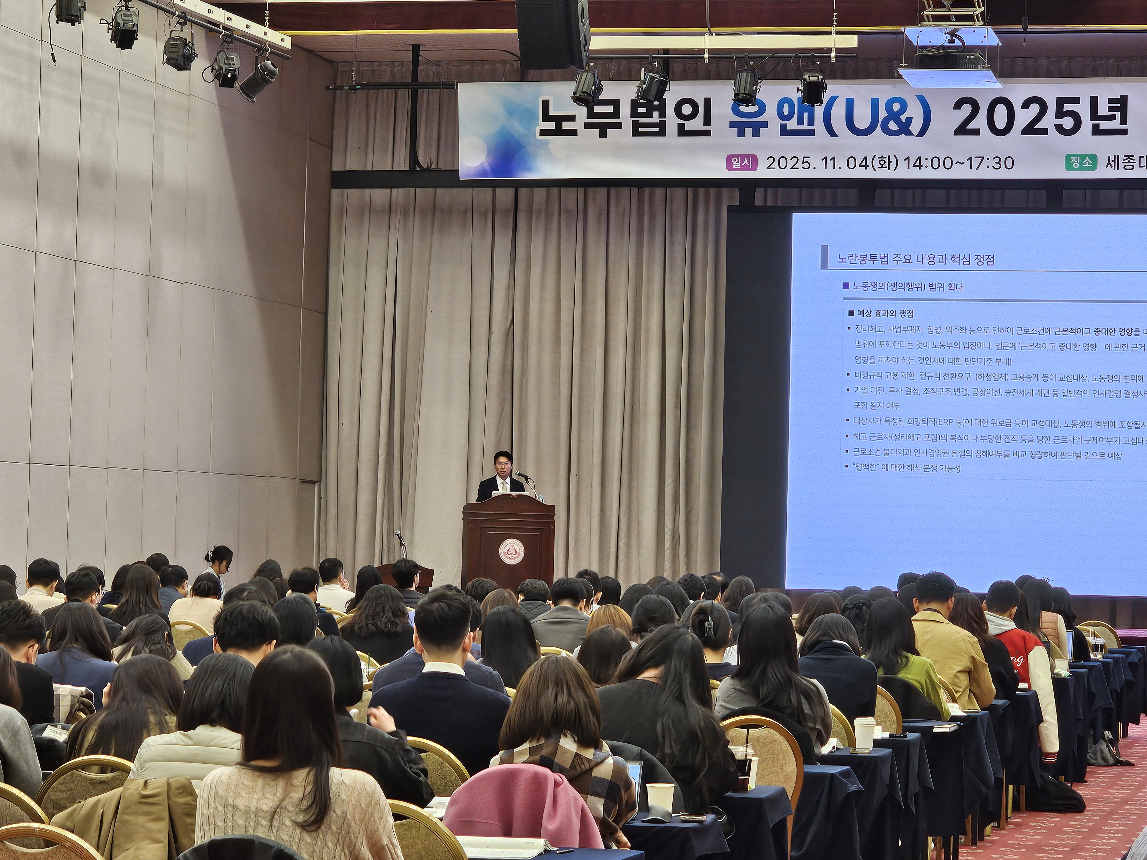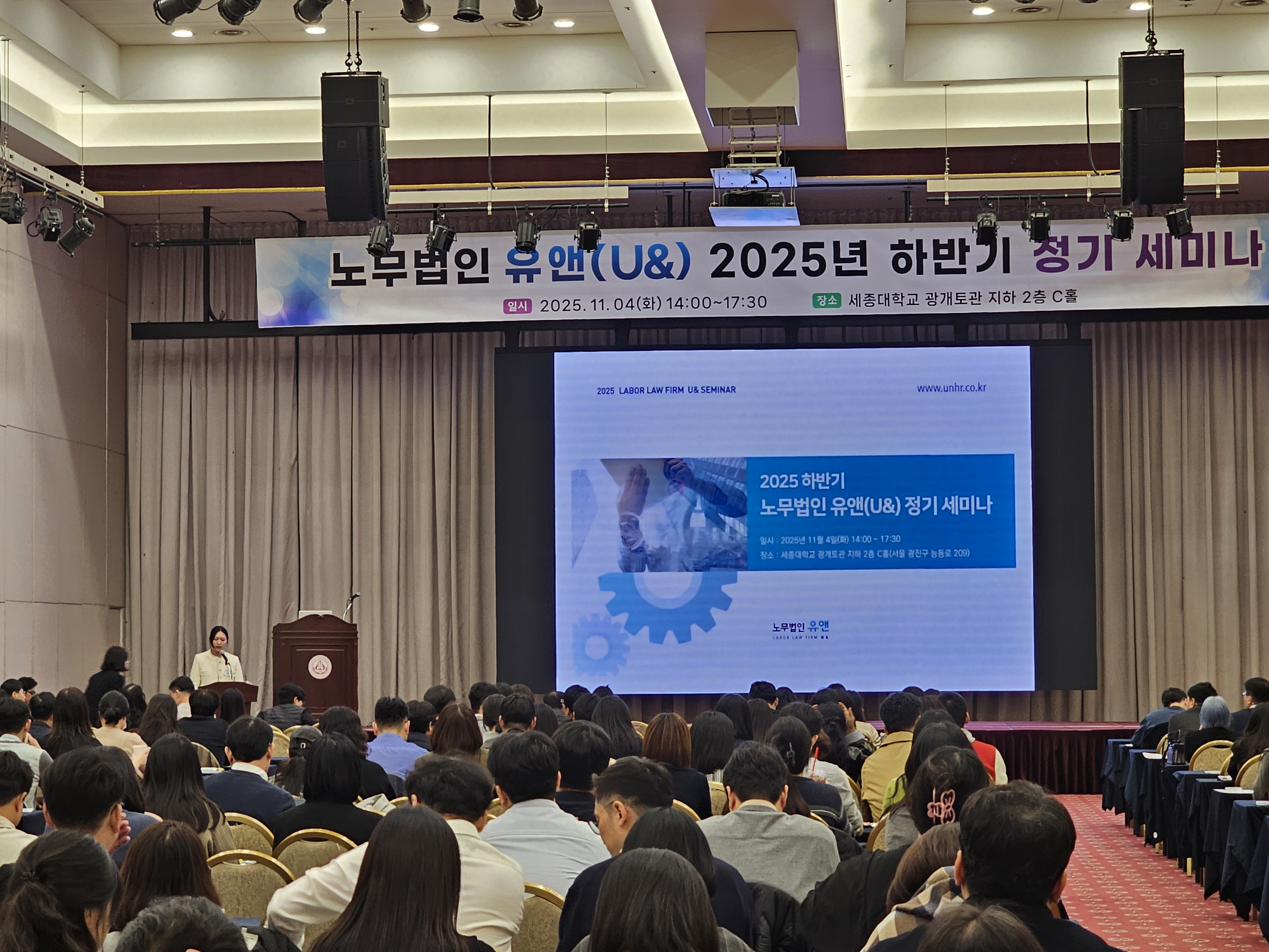 노무법인 유앤은 2025. 11. 04.(화) 오후 2시부터 5시 30분까지 하반기 정기 세미나를 세종대학교 광개토관에서 개최했습니다.